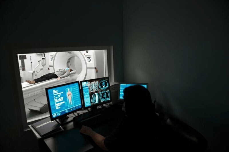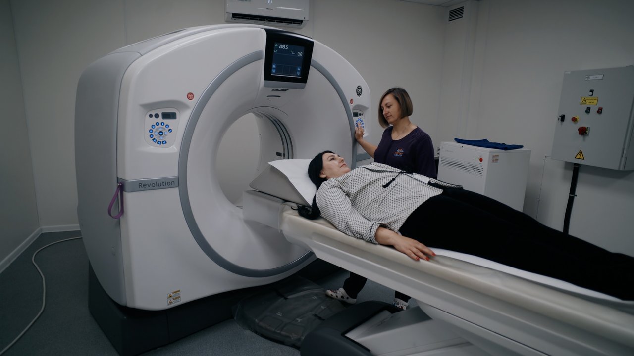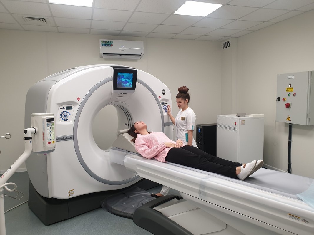 Еще врач проводит нативную компьютерную томографию с использованием внутривенного болюсного контрастного усиления (головного мозга и черепа, орбит, височной кости, околоносовых пазух, грудной клетки, брюшной полости, малого таза, позвоночника, костей и суставов).